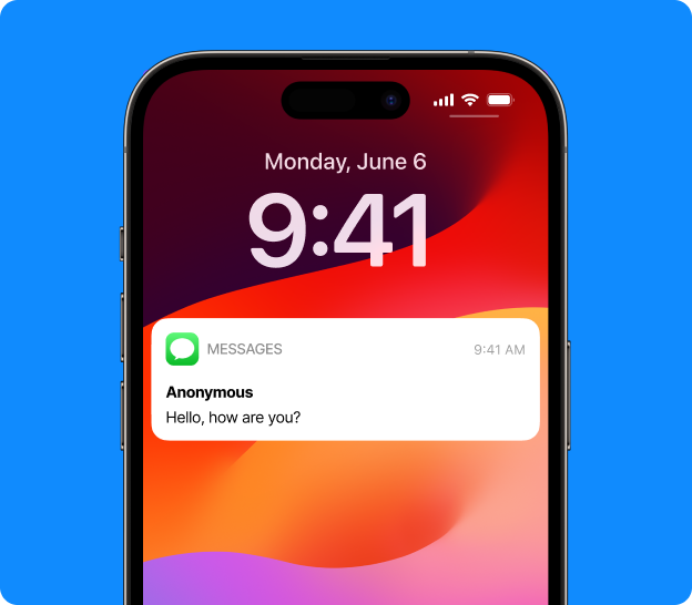 Envie uma mensagem de texto anônima para qualquer pessoa no mundo. Faça uma brincadeira engraçada com um amigo ou surpreenda seu crush no Dia dos Namorados. Basta escrever sua mensagem, inserir o número de telefone do destinatário e pressionar enviar. Acompanhe a entrega do seu SMS anônimo em tempo real. Garantimos sua privacidade. Suas informações não serão compartilhadas.